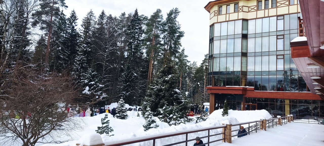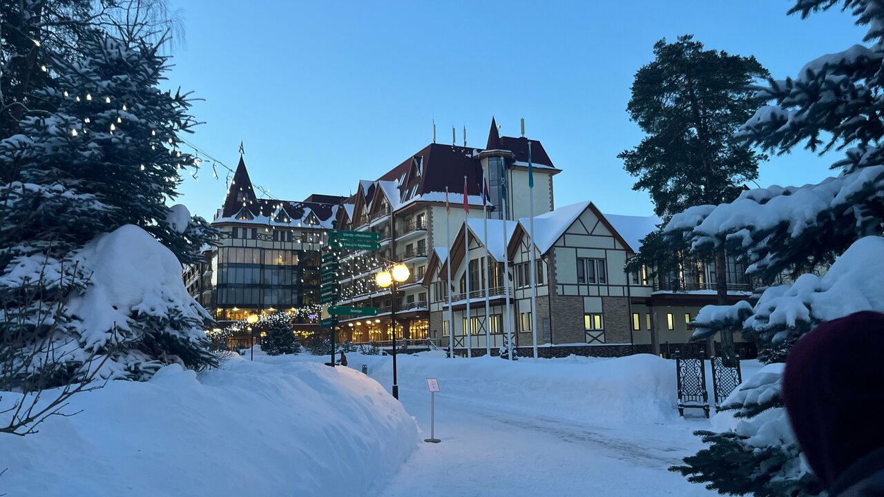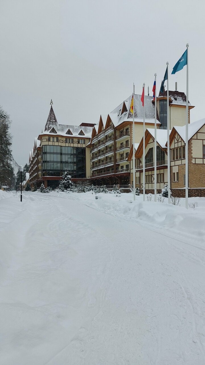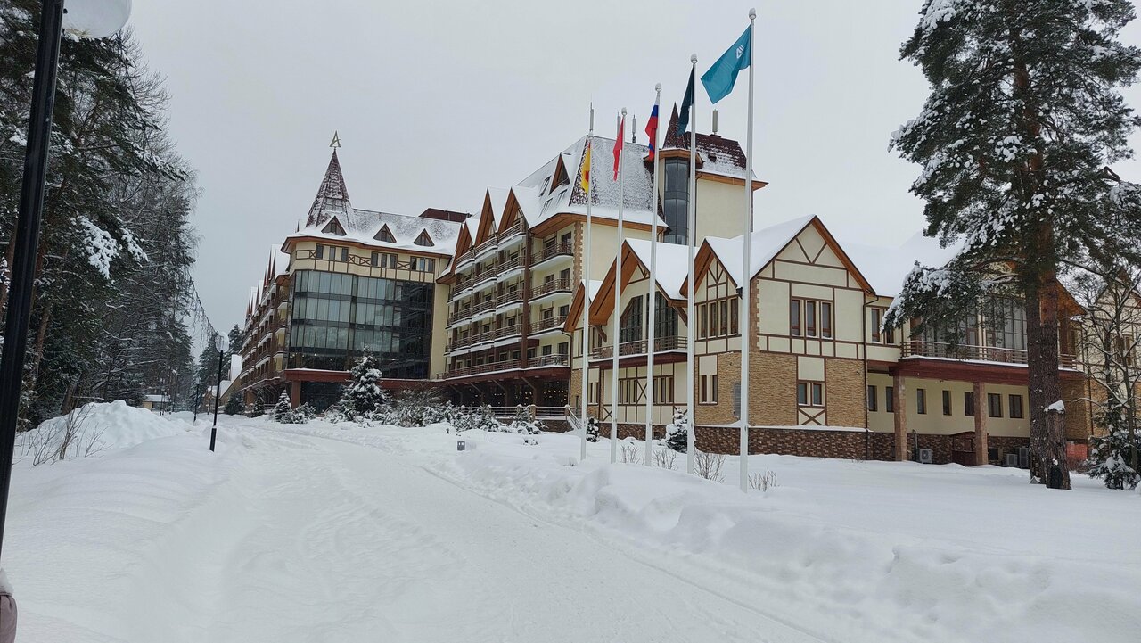 Хороший отель для короткого семейного отдыха с детьми в ближнем Подмосковье. Отдыхали здесь с женой и 2-ми маленькими детьми в новогодние праздники 2026 года. Плюсы (с точки зрения моей поездки): - очень много гостей с маленькими детьми (мои нашли с кем пообщаться); - приличная детская комната, где с 5 лет ребёнка даже одного можно оставить; - вкусная и разнообразная кухня. В ресторане на 1-ом этаже было даже детское меню/отдельный стол; - лично у нас был тихий просторный номер, в котором не было слышно соседей, но говорят, так везёт не всем; - зимой на территории детям понравился мини-зоопарк; - большой плюс при поездке зимой с маленькими детьми, то что и номера и рестораны и детская комната и банный комплекс: все находятся в одном здании без необходимости одеваться на улицу для их посещения; Минусы: - зимой не так то много вариантов досуга: на всесь отель всего 1 стол для настольного тенниса, бильярд и боулинг был только по записи в очередь ожидания от полудня и более; - во время нашего отдыха случился сильный снегопад, парковку практически не чистили (только основные дороги - подходы к ней). Было сложно довезти вещи обратно к машине и выехать с парковочного места.