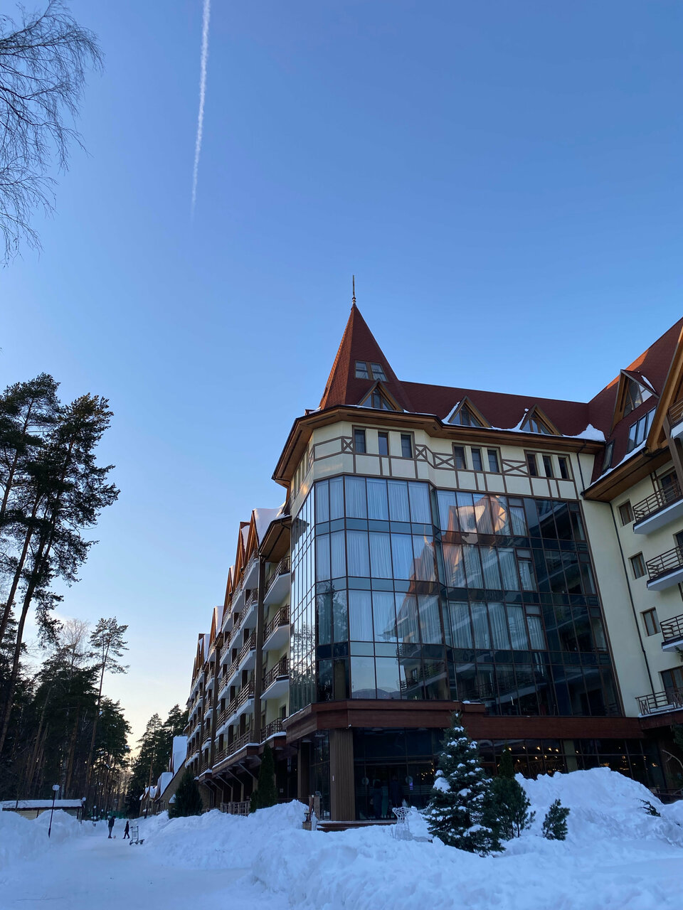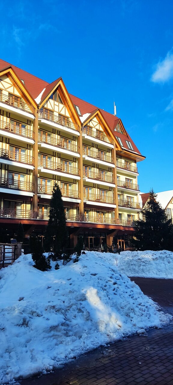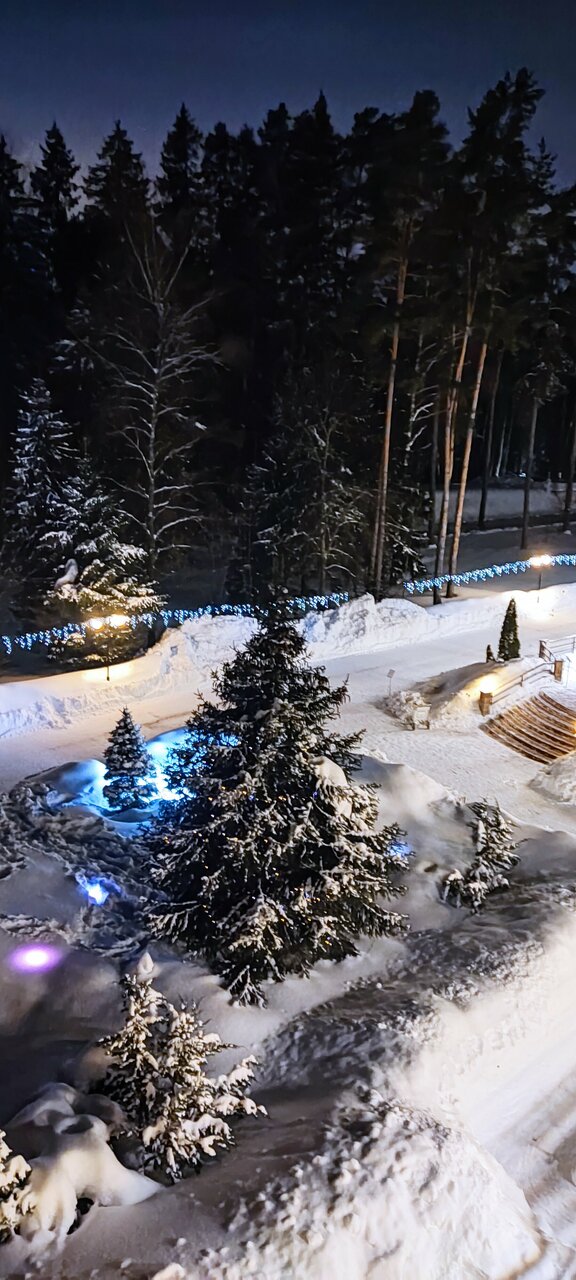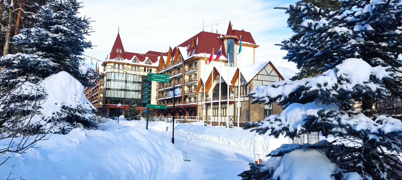 Хороший отель для короткого семейного отдыха с детьми в ближнем Подмосковье. Отдыхали здесь с женой и 2-ми маленькими детьми в новогодние праздники 2026 года. Плюсы (с точки зрения моей поездки): - очень много гостей с маленькими детьми (мои нашли с кем пообщаться); - приличная детская комната, где с 5 лет ребёнка даже одного можно оставить; - вкусная и разнообразная кухня. В ресторане на 1-ом этаже было даже детское меню/отдельный стол; - лично у нас был тихий просторный номер, в котором не было слышно соседей, но говорят, так везёт не всем; - зимой на территории детям понравился мини-зоопарк; - большой плюс при поездке зимой с маленькими детьми, то что и номера и рестораны и детская комната и банный комплекс: все находятся в одном здании без необходимости одеваться на улицу для их посещения; Минусы: - зимой не так то много вариантов досуга: на всесь отель всего 1 стол для настольного тенниса, бильярд и боулинг был только по записи в очередь ожидания от полудня и более; - во время нашего отдыха случился сильный снегопад, парковку практически не чистили (только основные дороги - подходы к ней). Было сложно довезти вещи обратно к машине и выехать с парковочного места.